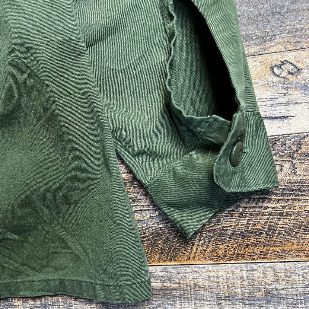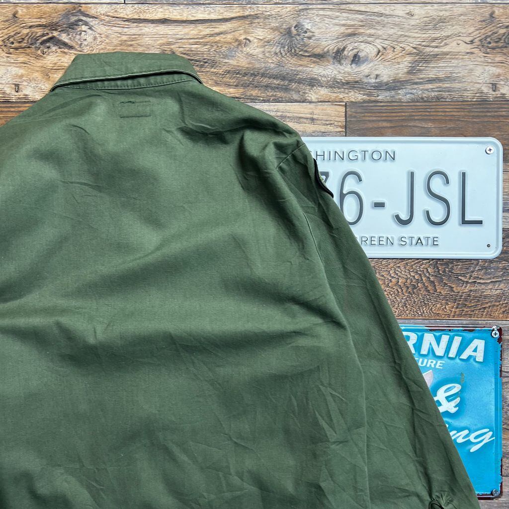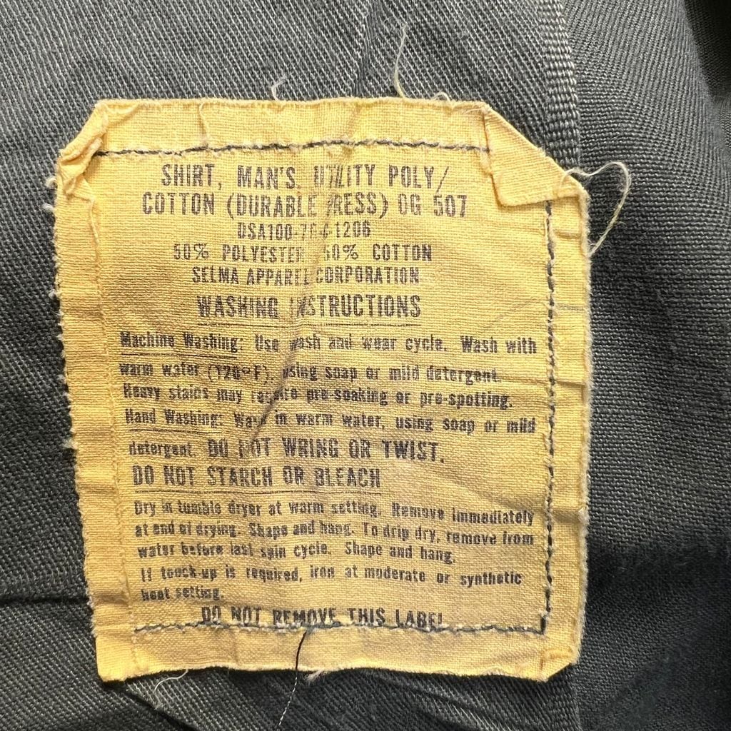 米軍実物の OG-507 ユーティリティシャツ です。1970〜80年代頃のDSA表記入り、ポリエステル×コットン混紡の生地でシワになりにくい「Durable Press」仕様。ワークシャツ感覚でタウンユースにも取り入れやすく、ミリタリーコーデやヴィンテージスタイルにもおすすめの一着です。