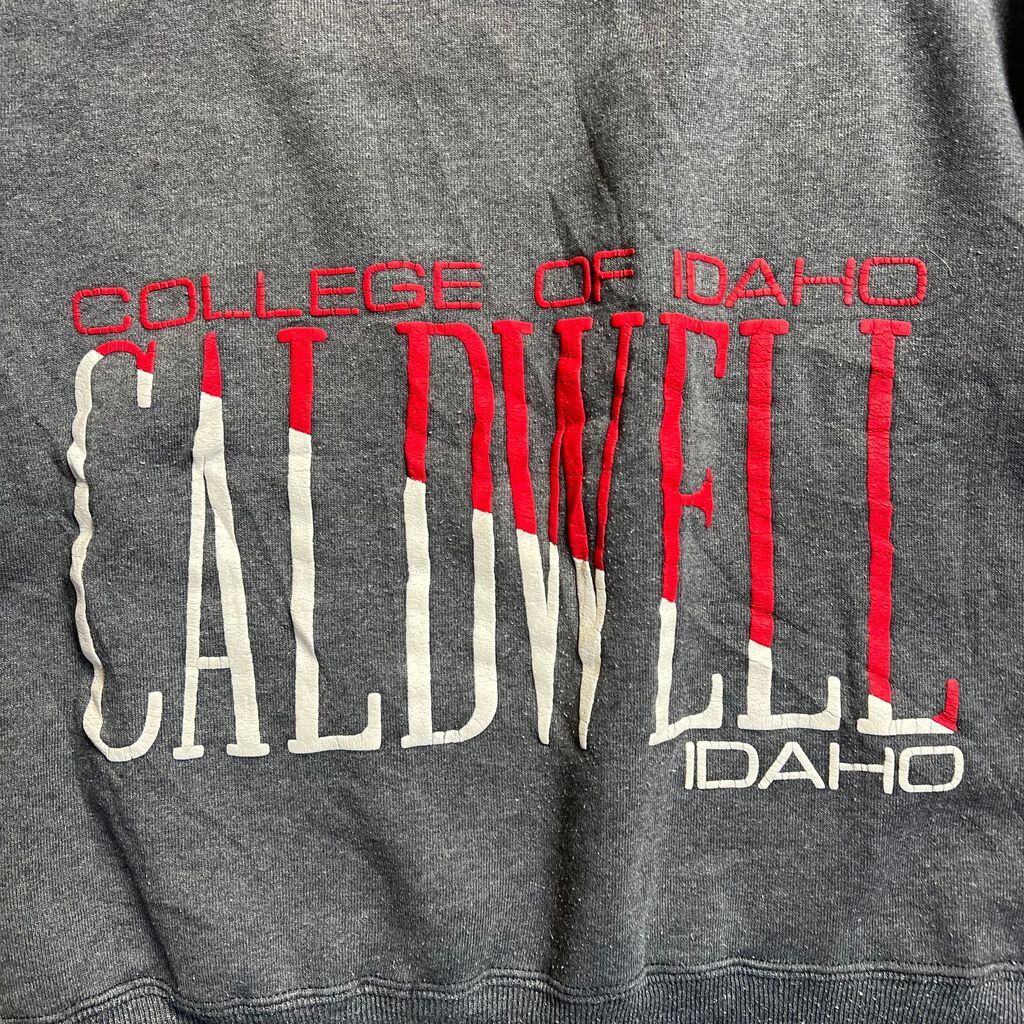 「COLLEGE OF IDAHO / CALDWELL」プリント入りで、当時のカレッジスタイルを象徴する一着。