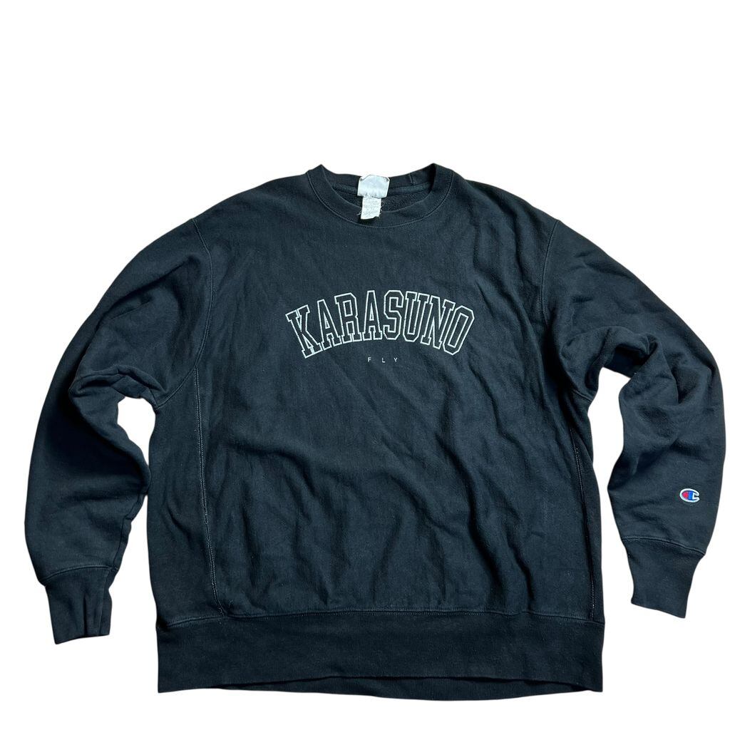 Champion リバースウィーブ スウェット KARASUNO 刺繍ロゴ ブラック XL相当 チャンピオン クルーネック トレーナー