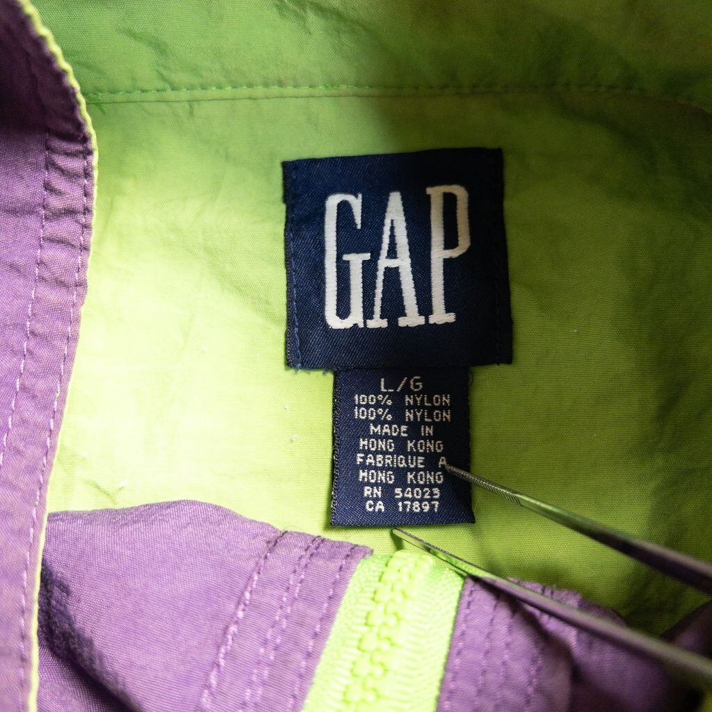 当時のGAPらしい大胆なカラーリング(パープル×ライムグリーン)が特徴の一着。