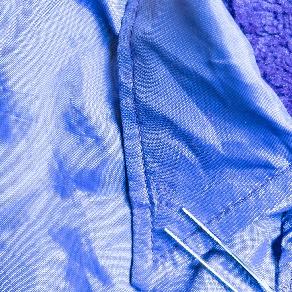 裏地にはパープルのボアが施され、防寒性も高い仕様。