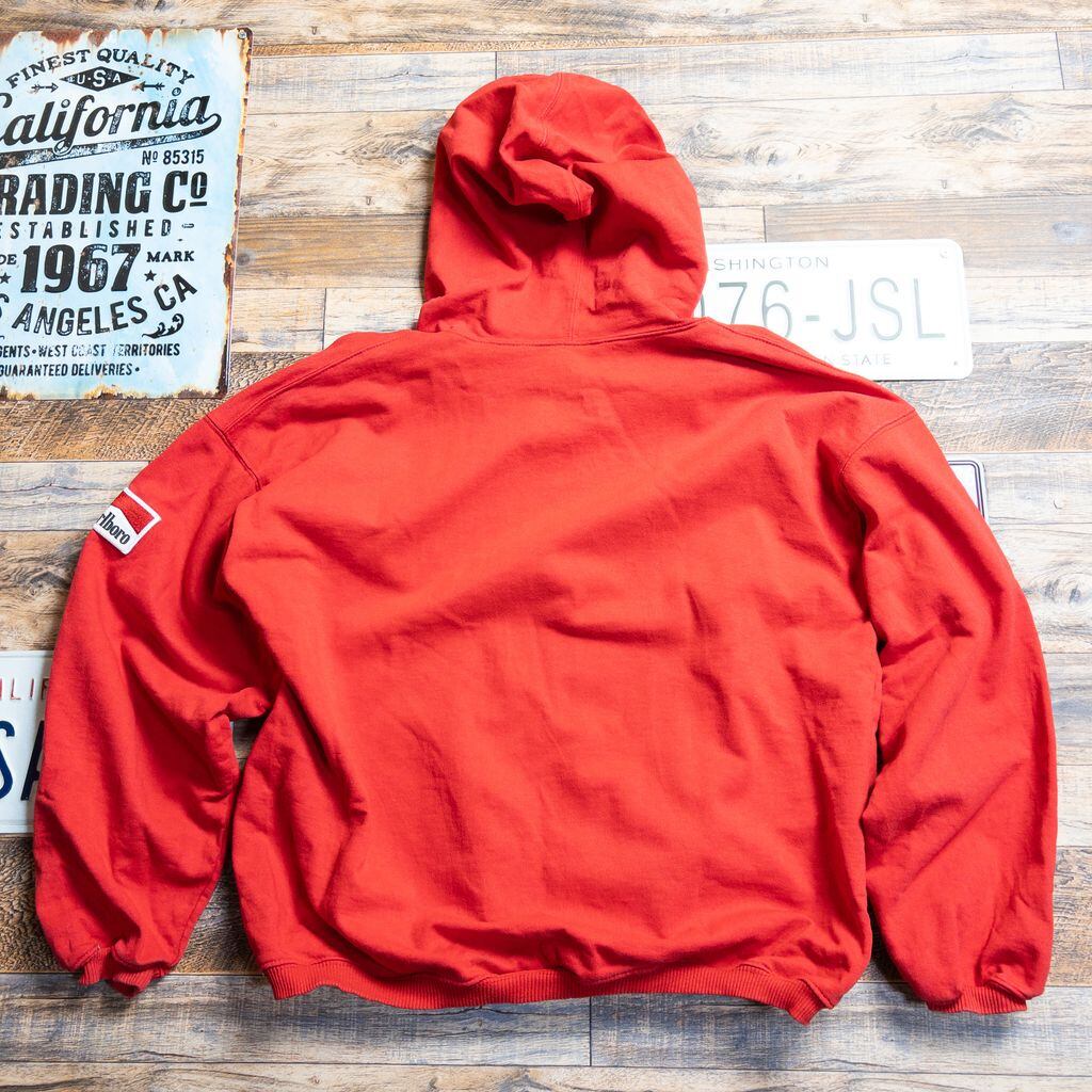 90s USA製 Marlboro Country Store 刺繍ロゴ スウェットパーカー レッド L 短丈ワイド