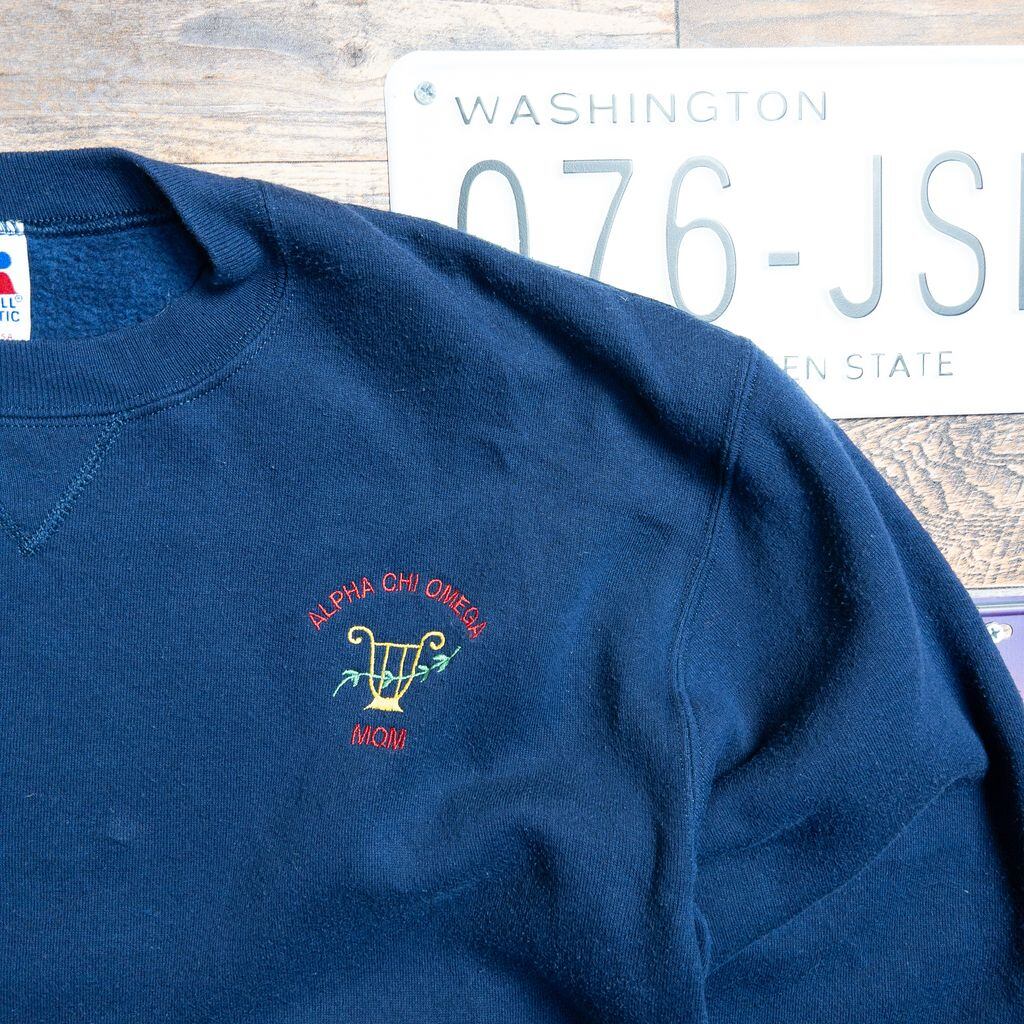 胸に「ALPHA CHI OMEGA(アルファカイオメガ)」の刺繍入りで、
