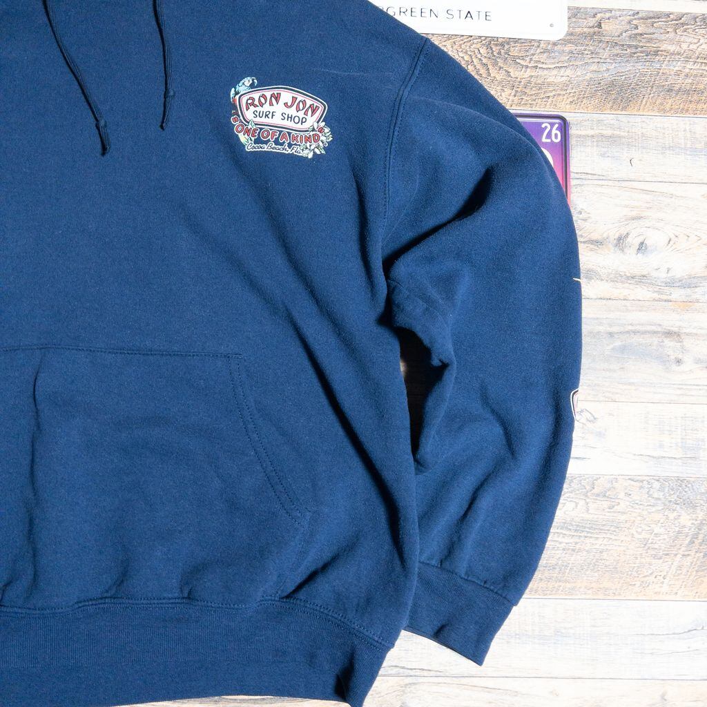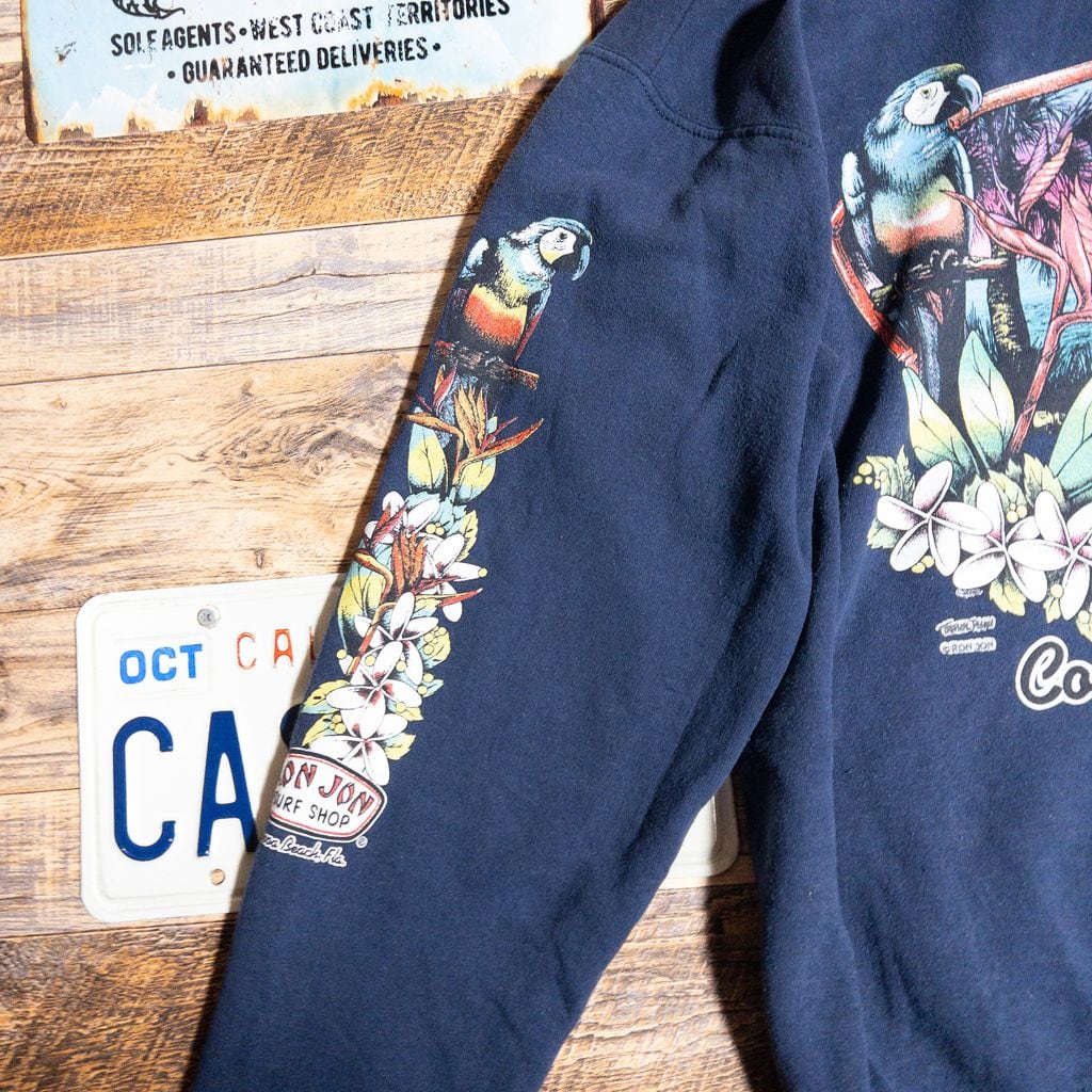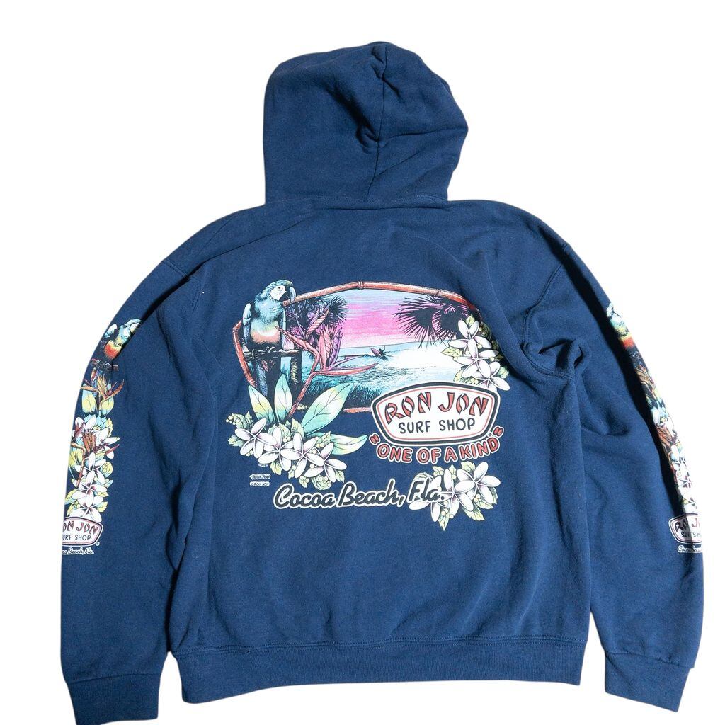 Ron Jon Surf Shop パロット&フラワー バックプリント パーカー ネイビー L Cocoa Beach オールドサーフ 古着 ロンジョン