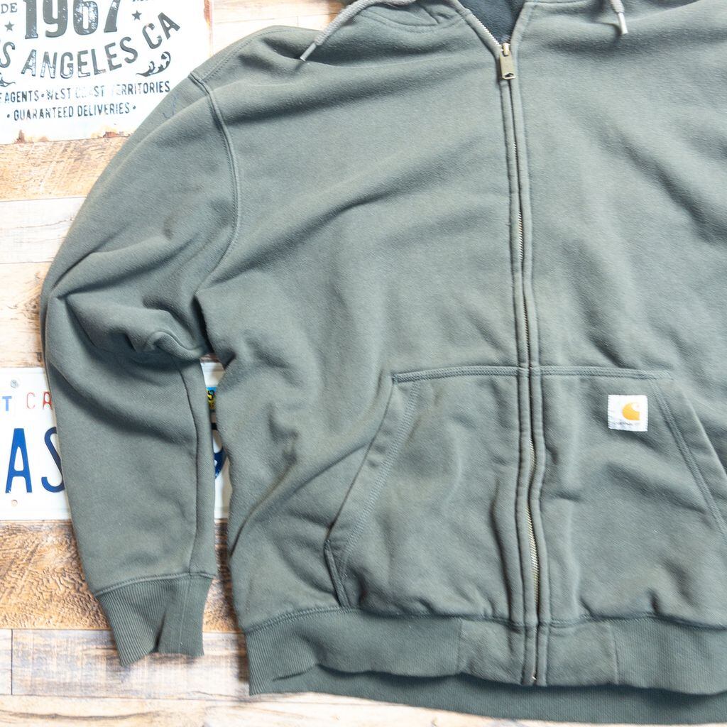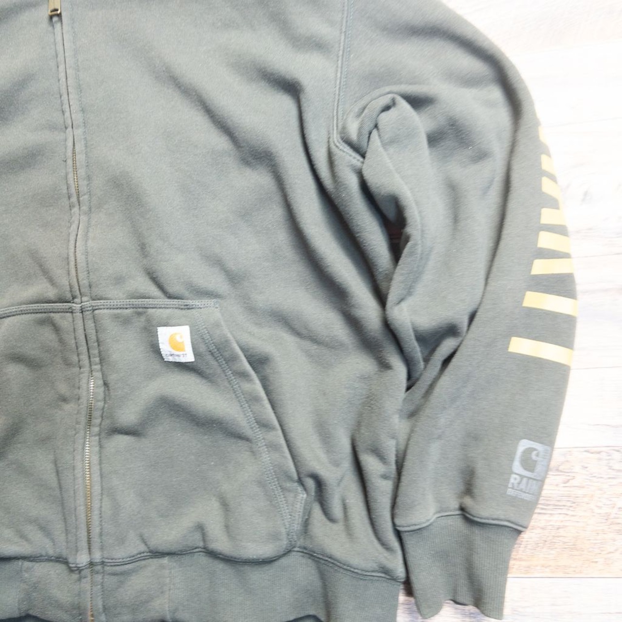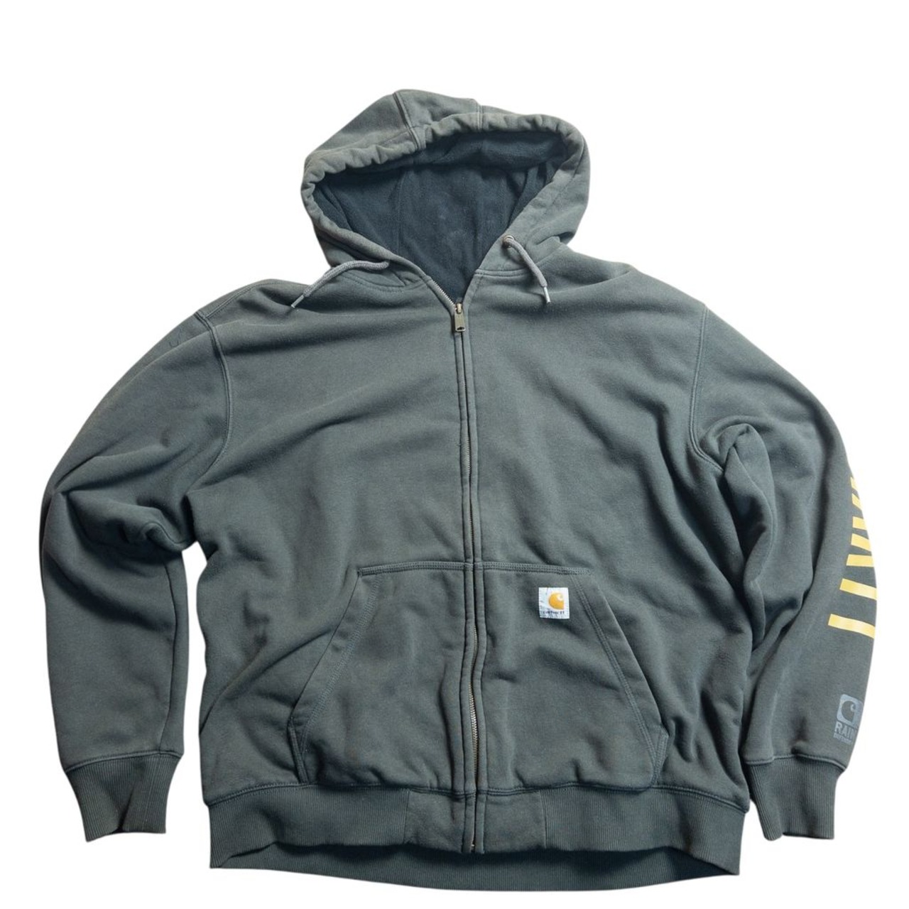Carhartt Rain Defender フルジップ スウェットパーカー ダークオリーブ L 裏起毛 カーハート ワークウェア 古着