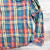レッド×イエロー×グリーンのマルチチェック柄は、90s〜00sのアメカジ・オールドサーフスタイルとの相性抜群。