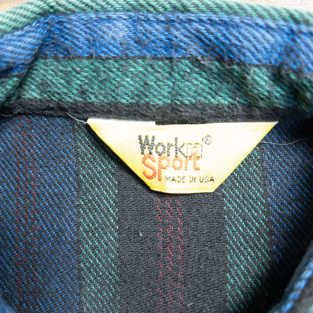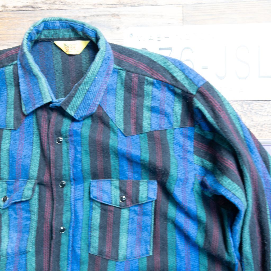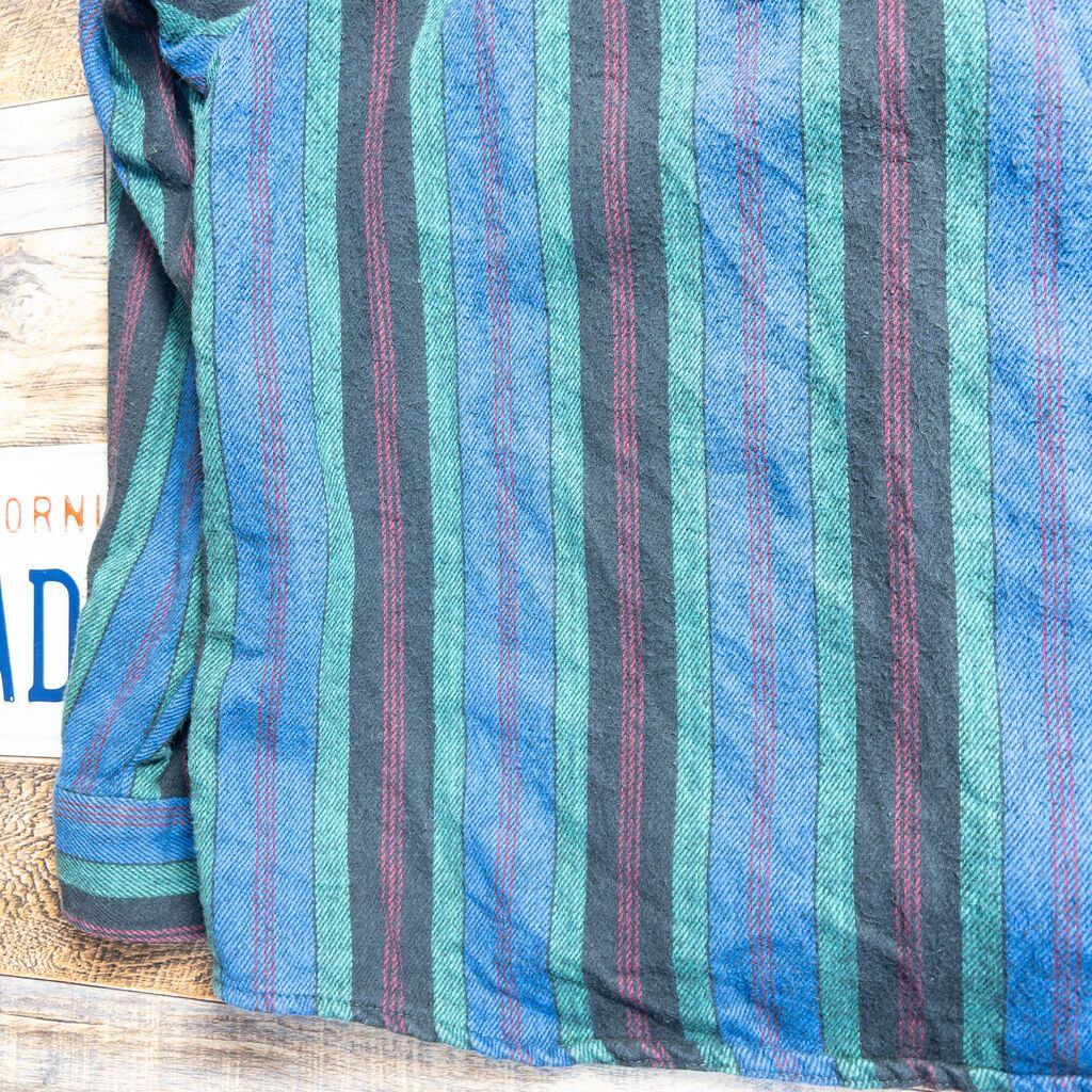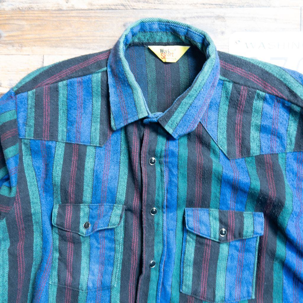 USA製 Work’n Sport ヘビーネルシャツ ストライプ柄 ブルーグリーン系 XL相当 アメカジ ワーク 古着 80s〜90s
