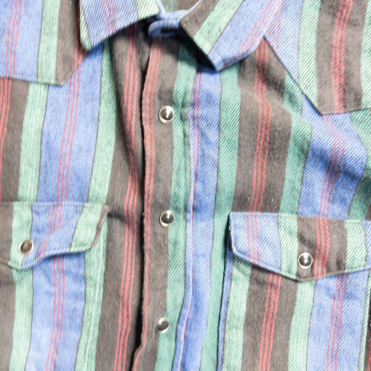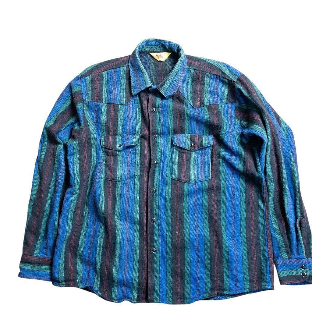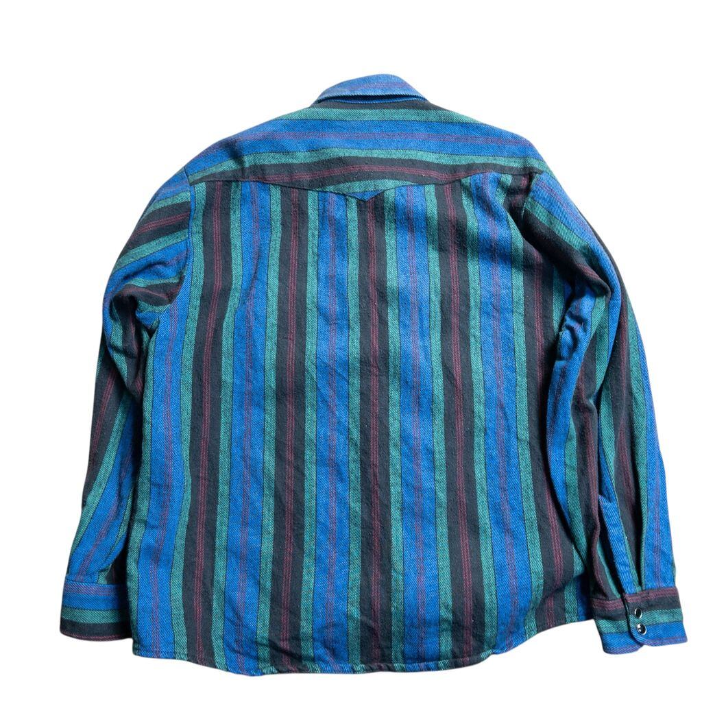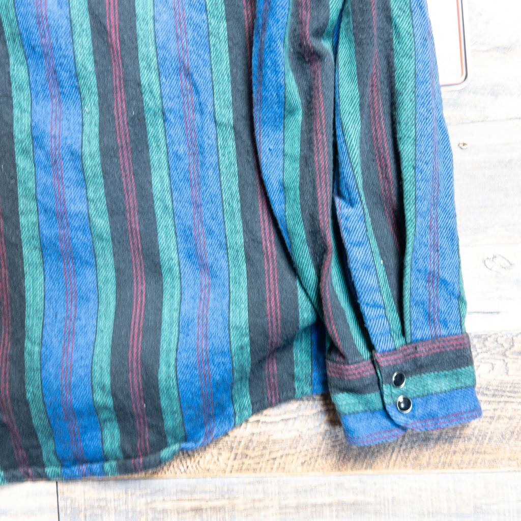 USA製 Work’n Sport ヘビーネルシャツ ストライプ柄 ブルーグリーン系 XL相当 アメカジ ワーク 古着 80s〜90s