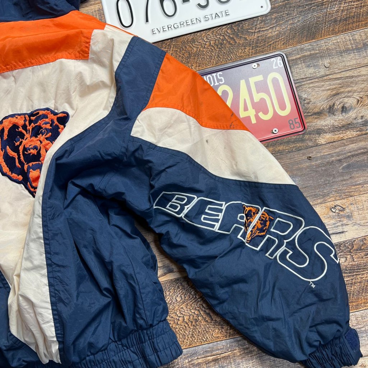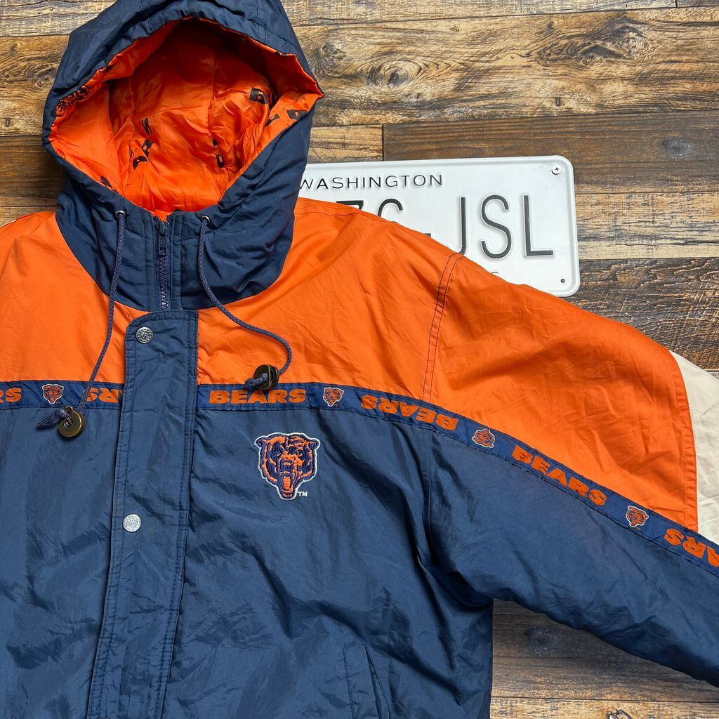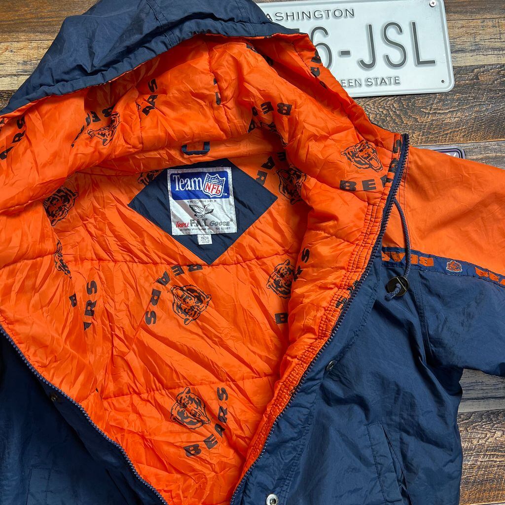Team NFL × TRIPLE F.A.T. GOOSE / シカゴ・ベアーズ 中綿ナイロン アノラックジャケット 90s 1994年製 L相当 ネイビー×オレンジ