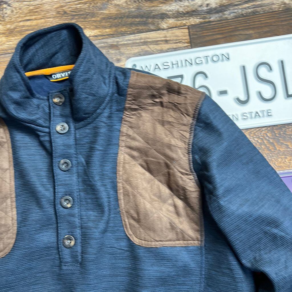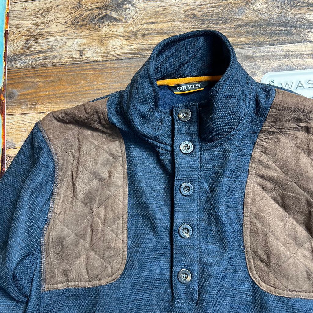 ORVIS / オービス ハンティングデザイン スウェットプルオーバー M ネイビー×ブラウン 90s〜00s エルボーパッチ アウトドア 古着
