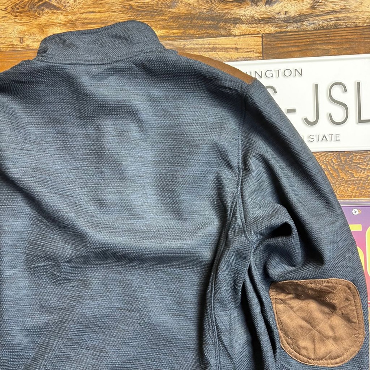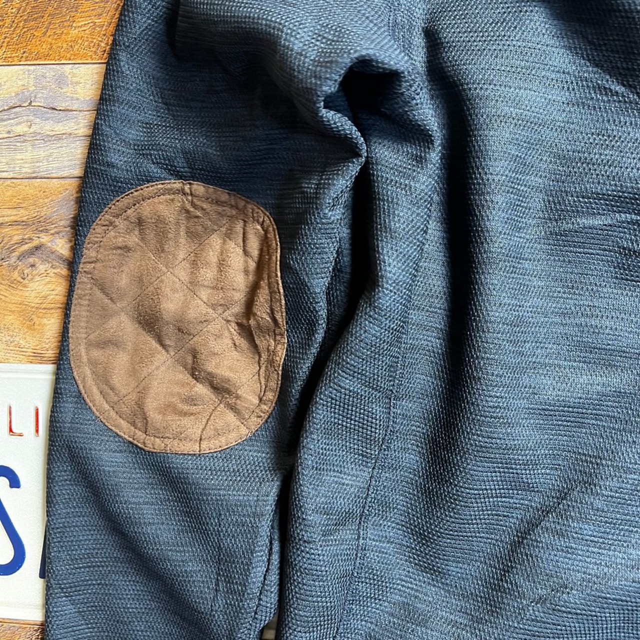 ショルダー・エルボー部分にはスエード調のキルティングパッチを配置。