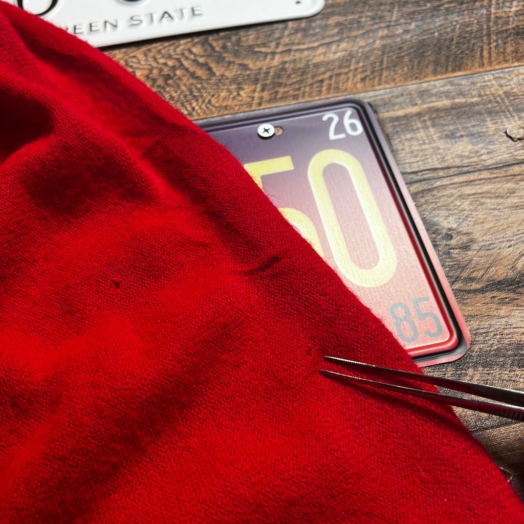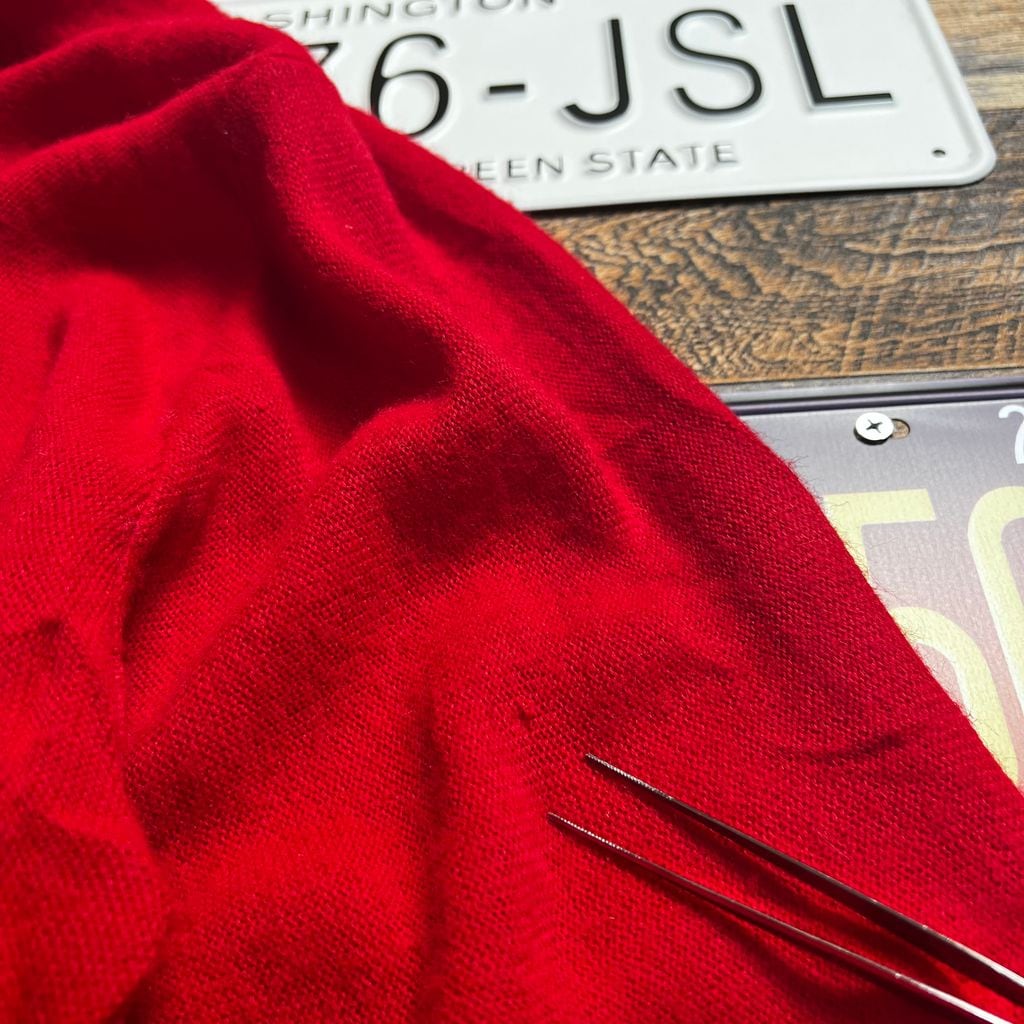 現行にはない発色の良いビビッドなレッドカラーと、胸のワニロゴが特徴的です。