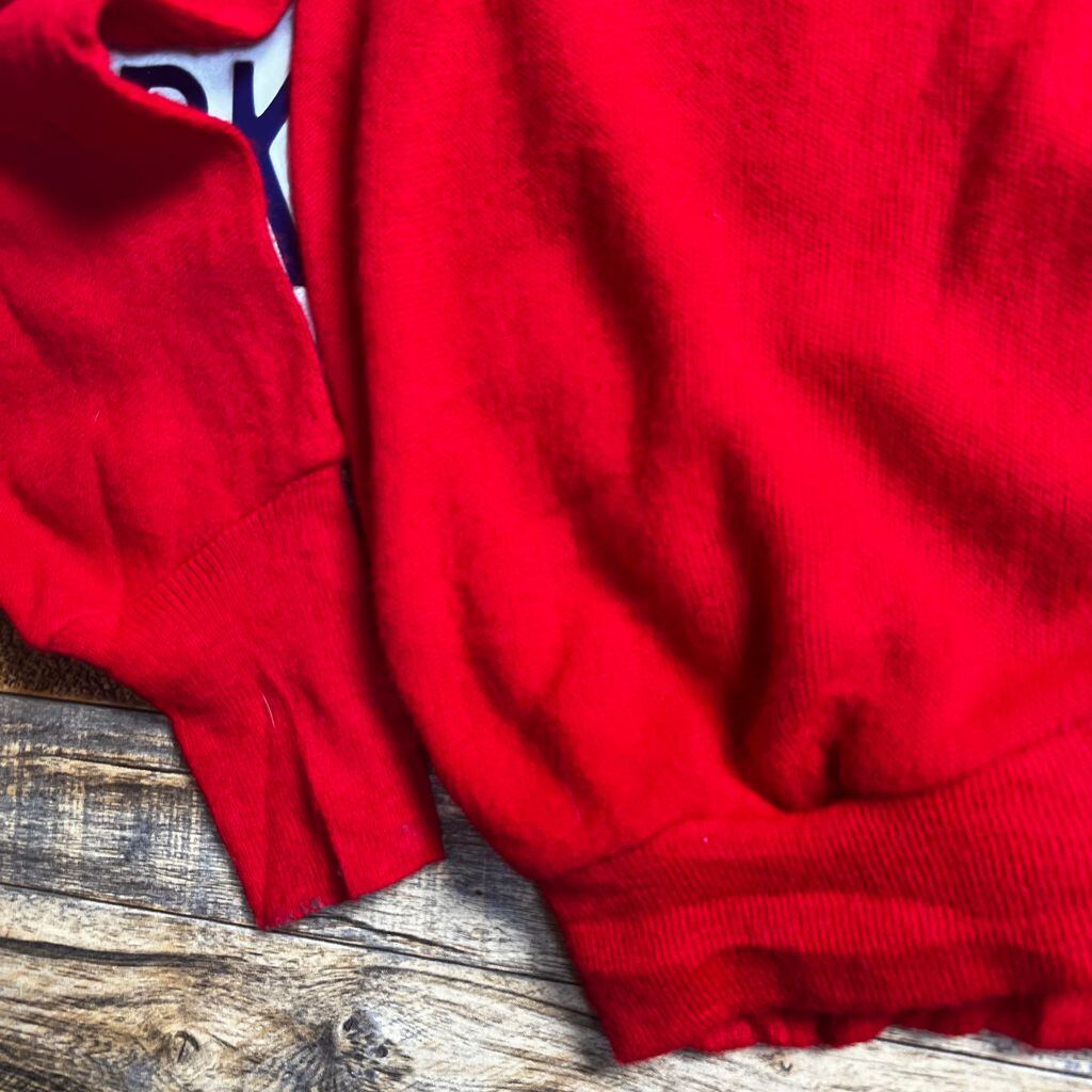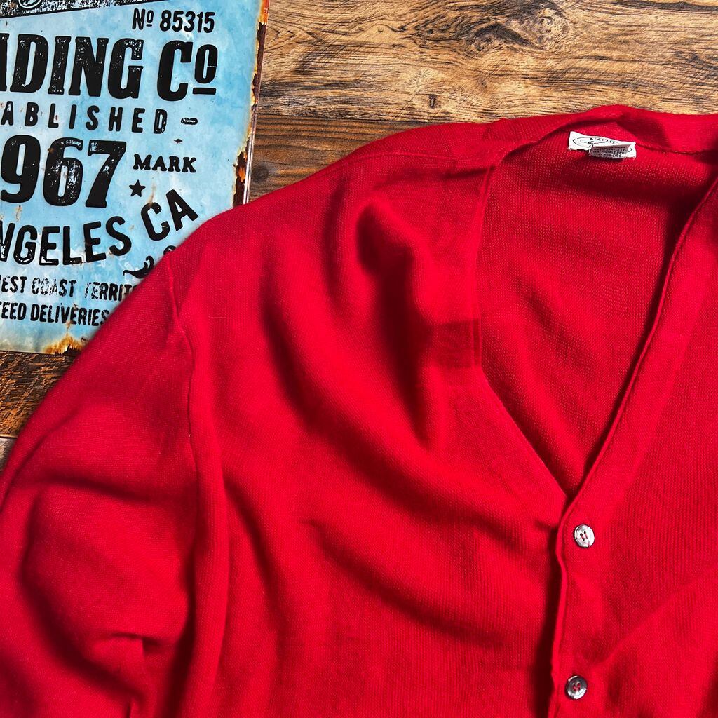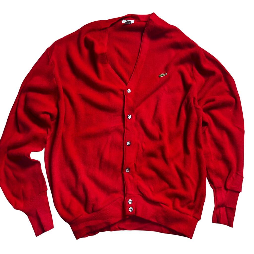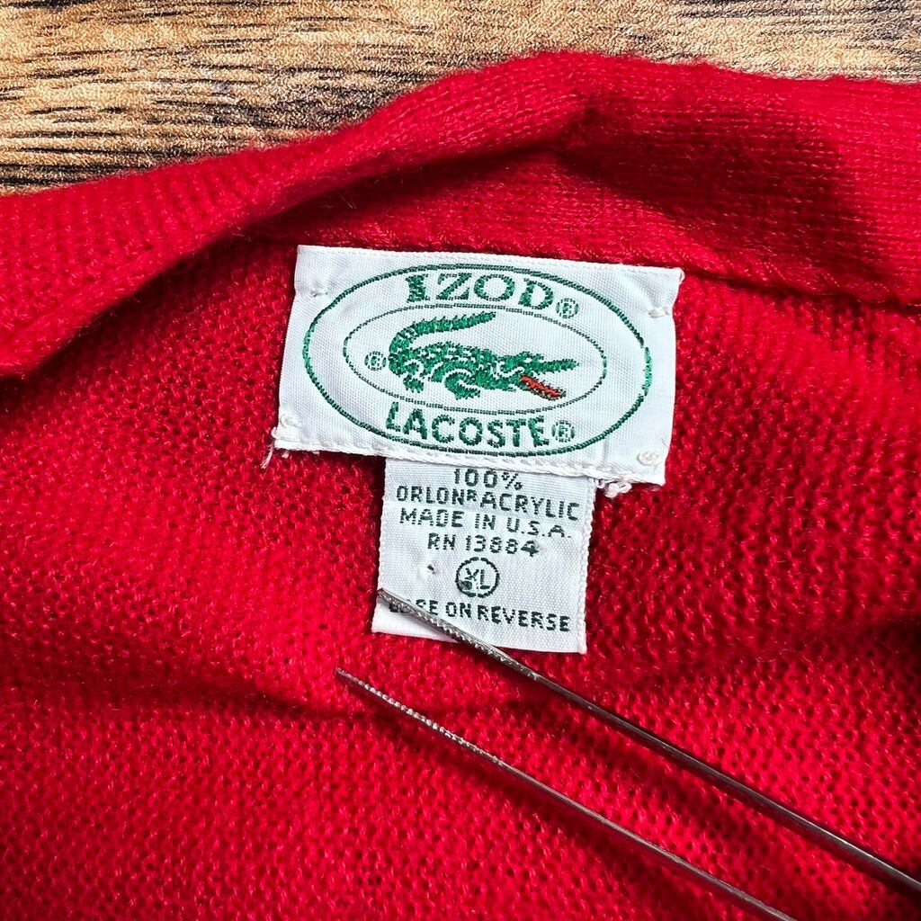 IZOD LACOSTE / アイゾッド ラコステ 70s〜80s アクリルカーディガン XL レッド MADE IN USA オーロンアクリル ワニロゴ ヴィンテージ 古着