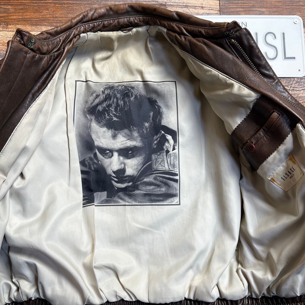 ELSACE メンズ 羊革 レザージャケット ジェームズ・ディーンプリント裏地 本革 ライダース系 アウター フライトジャケットタイプ