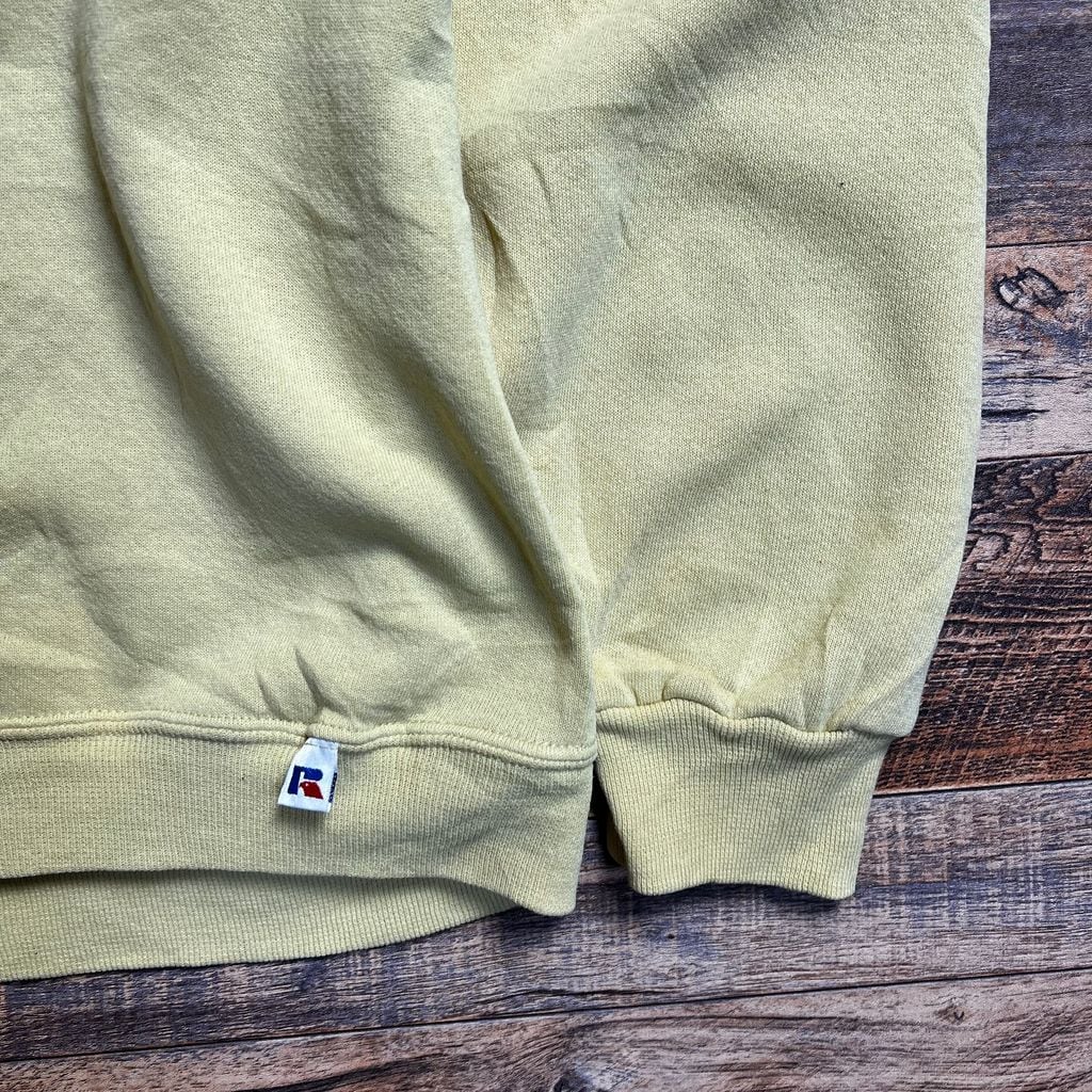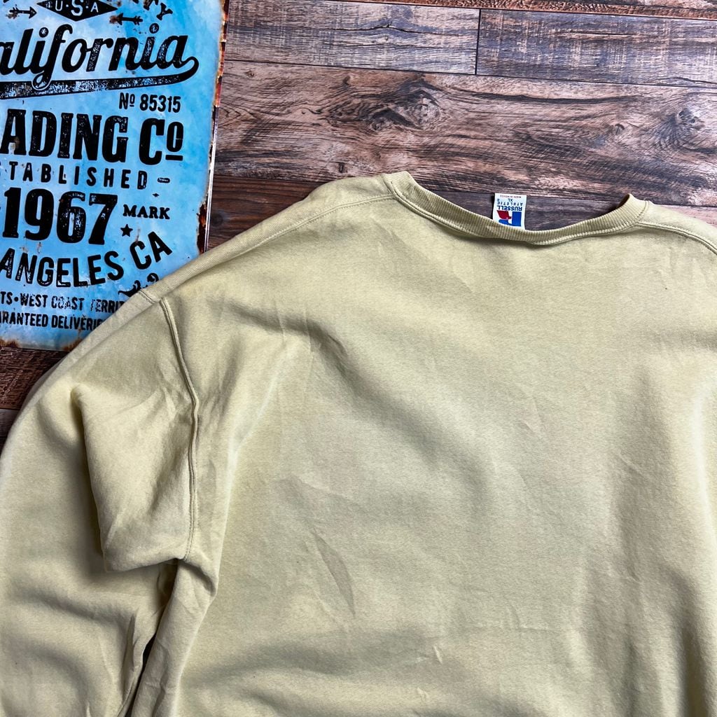 ライトイエローの色味とオーバーサイズ気味のシルエットが特徴で、アメカジ・古着スタイルに相性抜群。