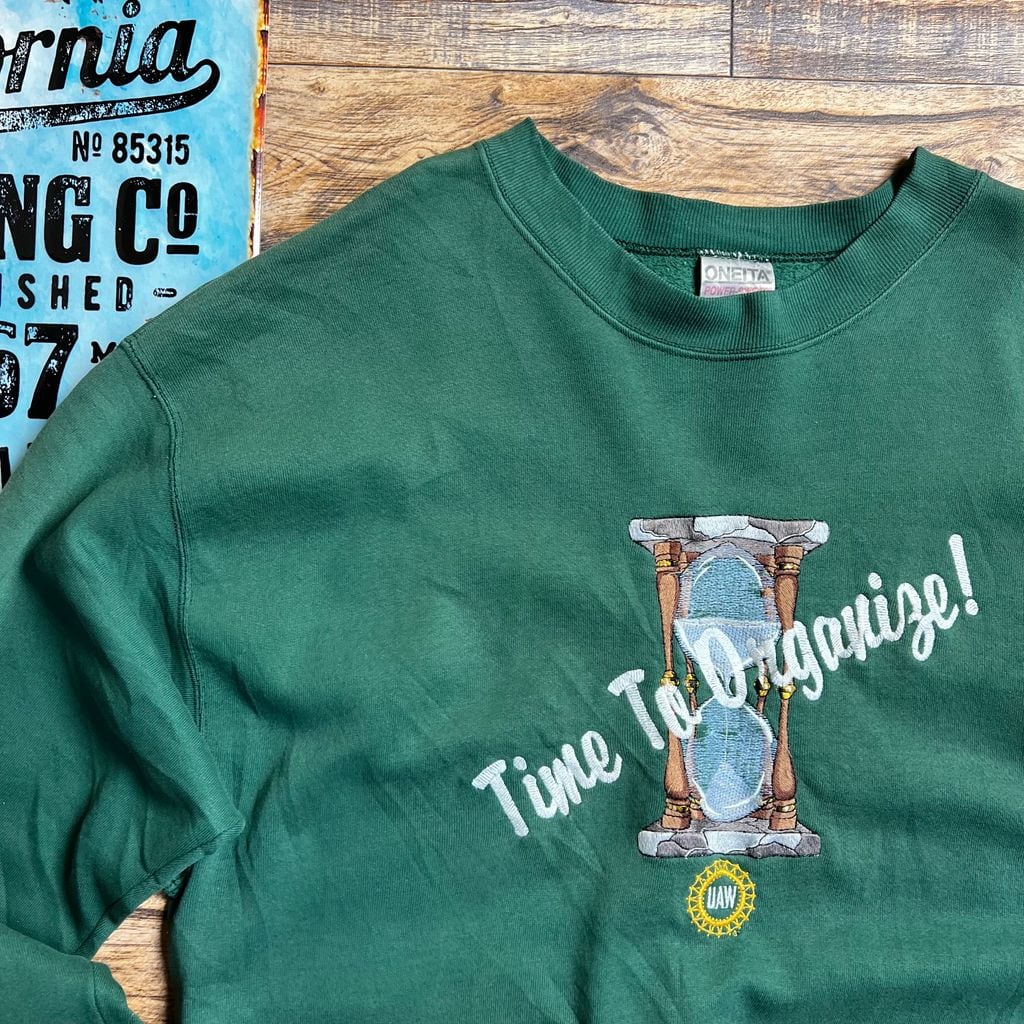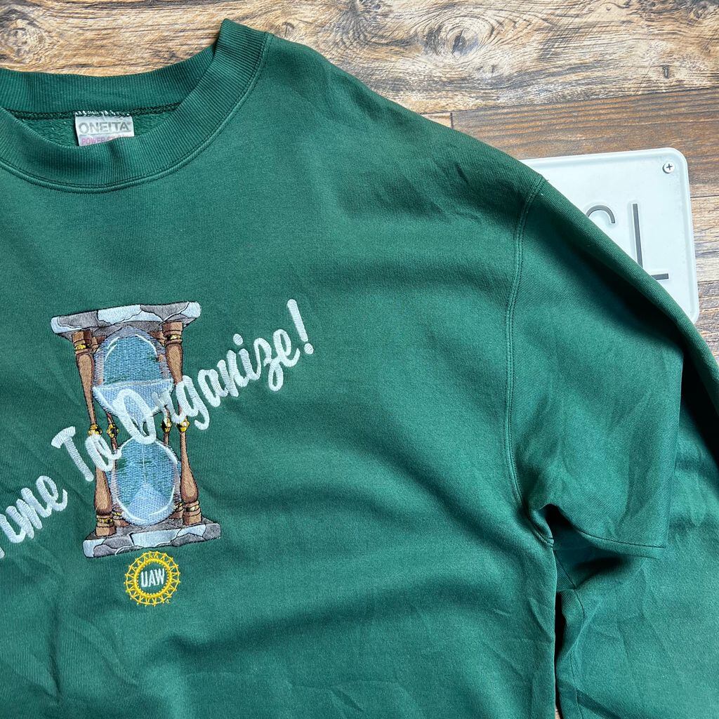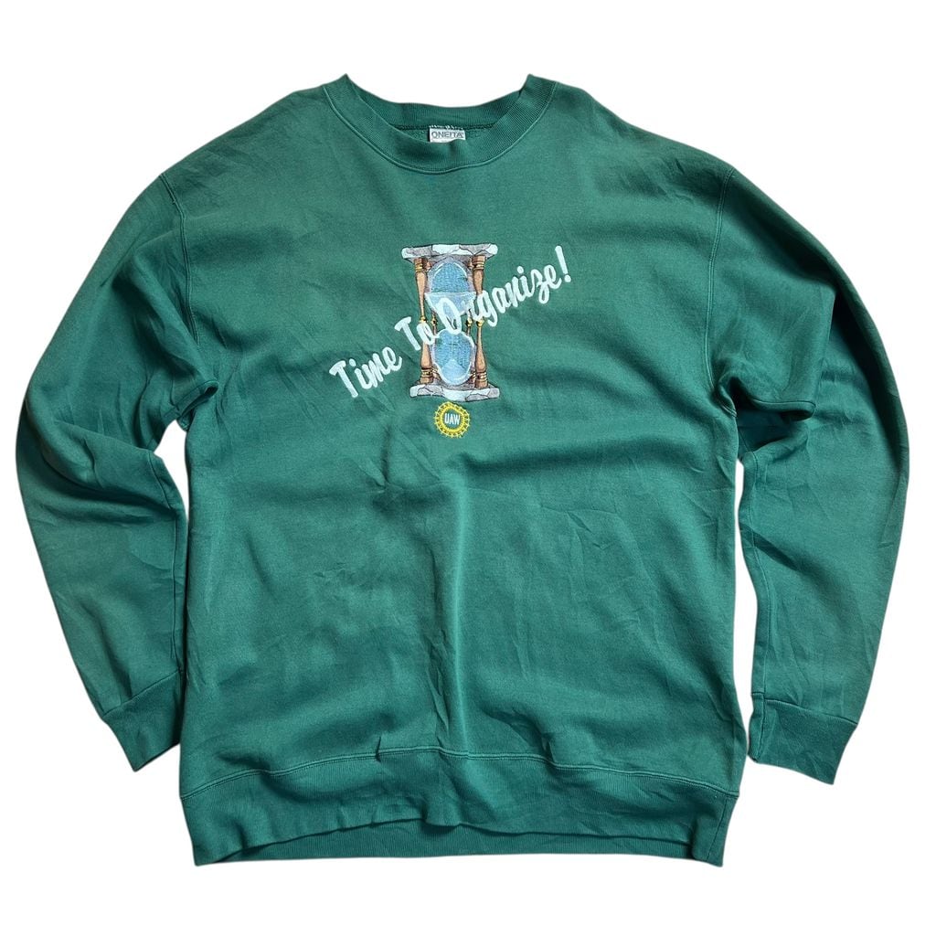 ONEITA / オニータ “Time To Organize!” プリントスウェット 90s USA製 グリーン XL