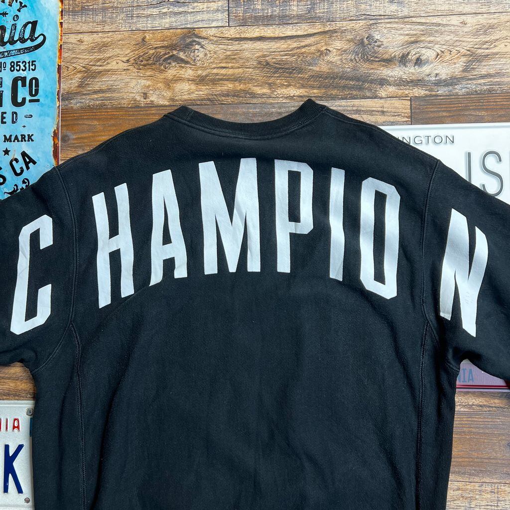 Champion / チャンピオン リバースウィーブ スウェット 刺繍ロゴ 背面CHAMPIONプリント ブラック L