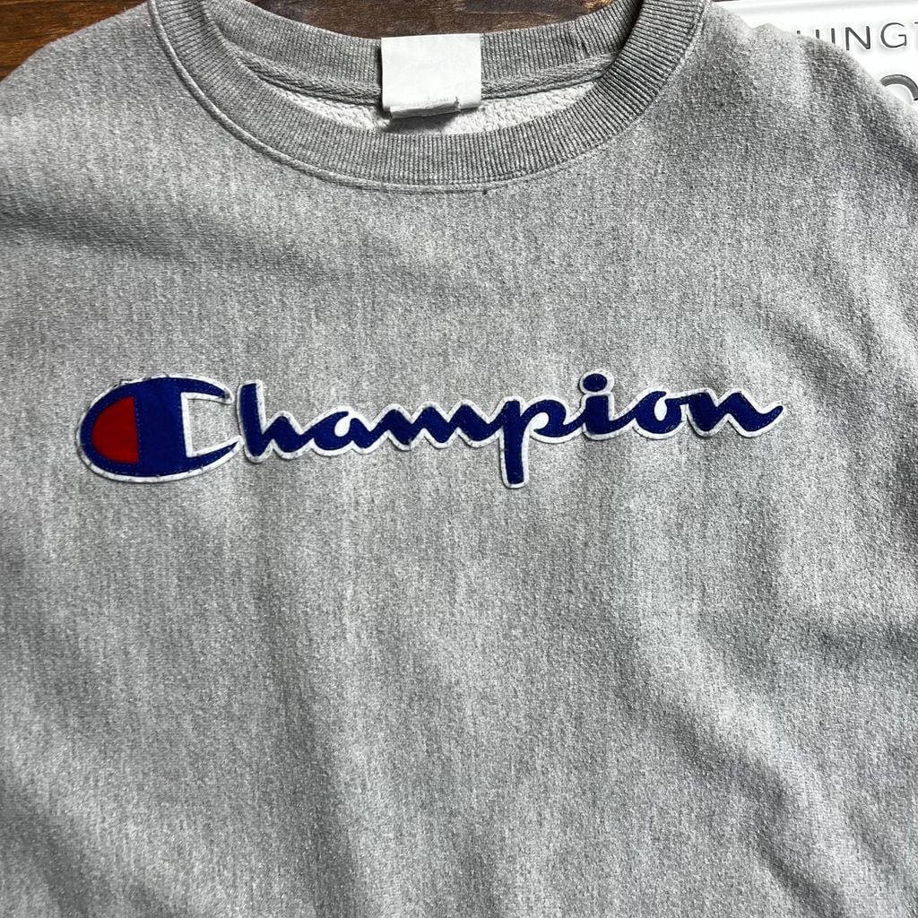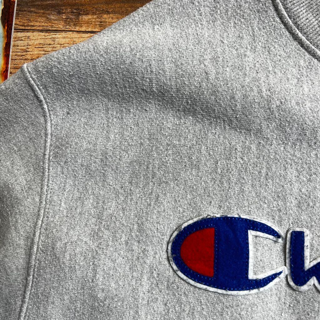 Champion / チャンピオン リバースウィーブ クルーネックスウェット 刺繍ワッペンロゴ XL グレー