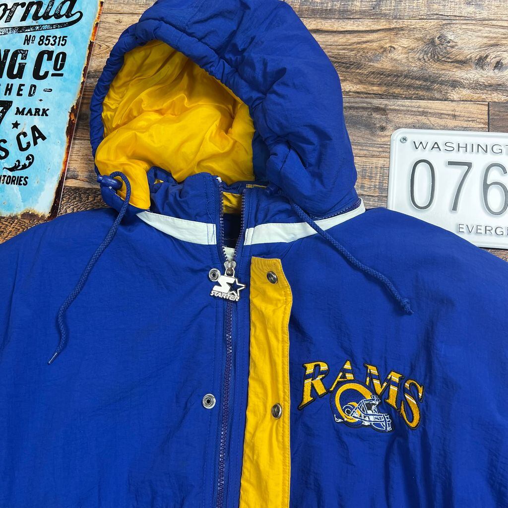 【スターター / NFL公式】90s Los Angeles Rams 中綿ナイロンジャケット フード付き XL