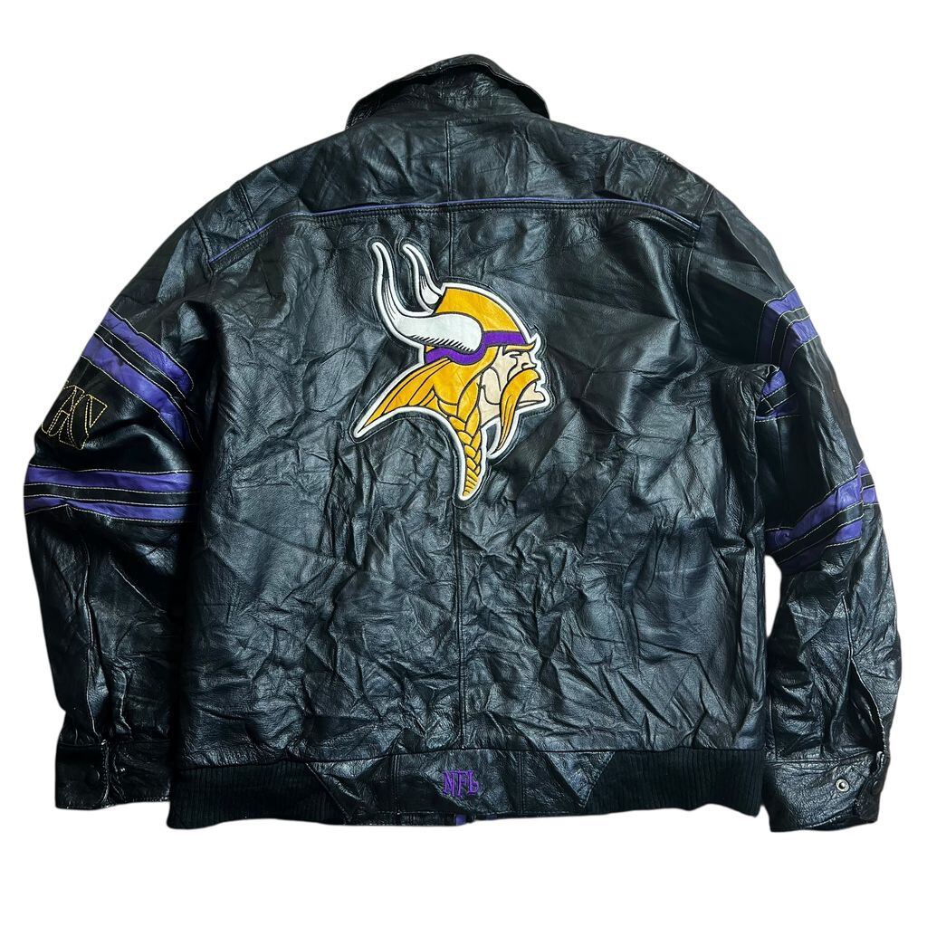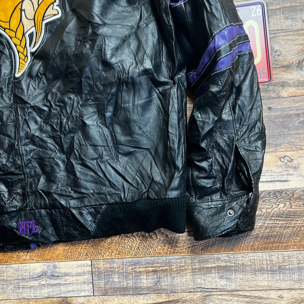【90s〜00s NFL公式】MINNESOTA VIKINGS レザージャケット XL 本革 ブラック