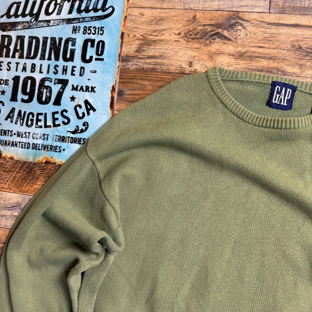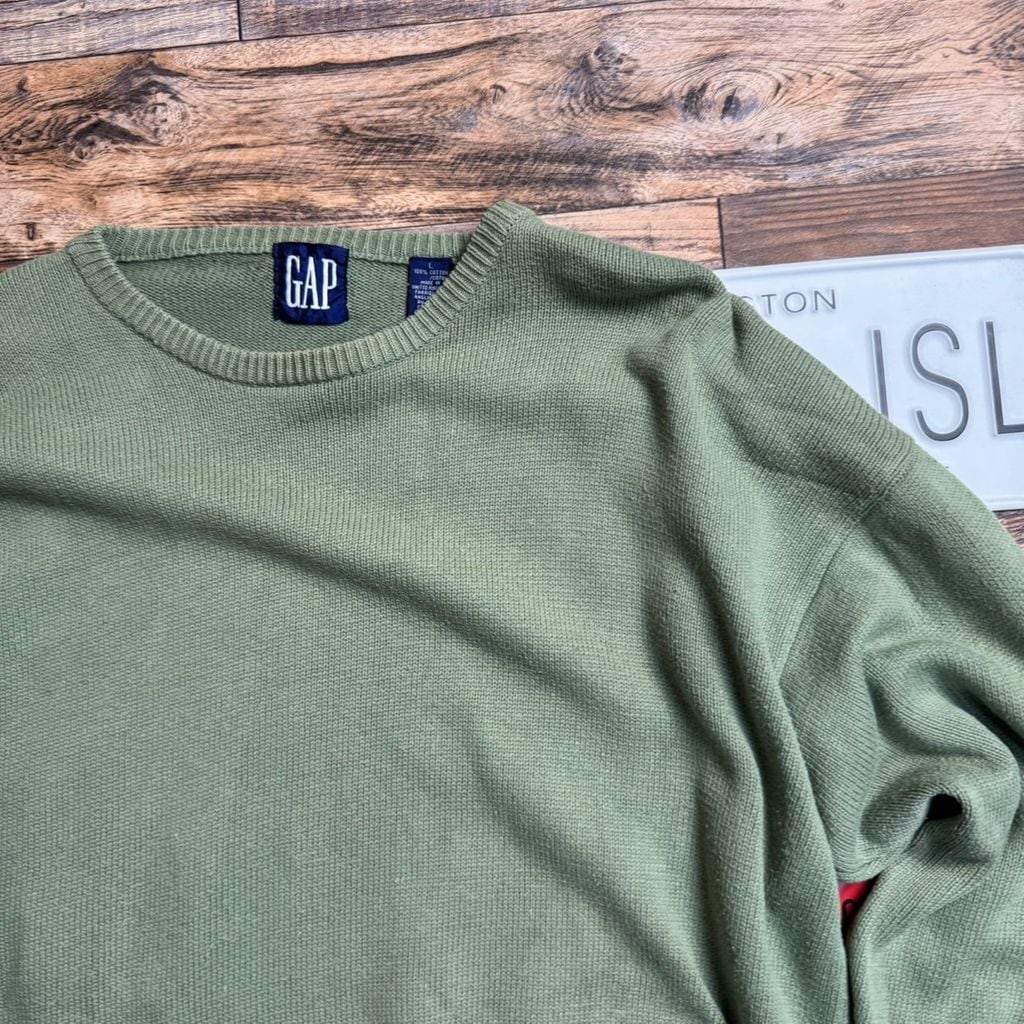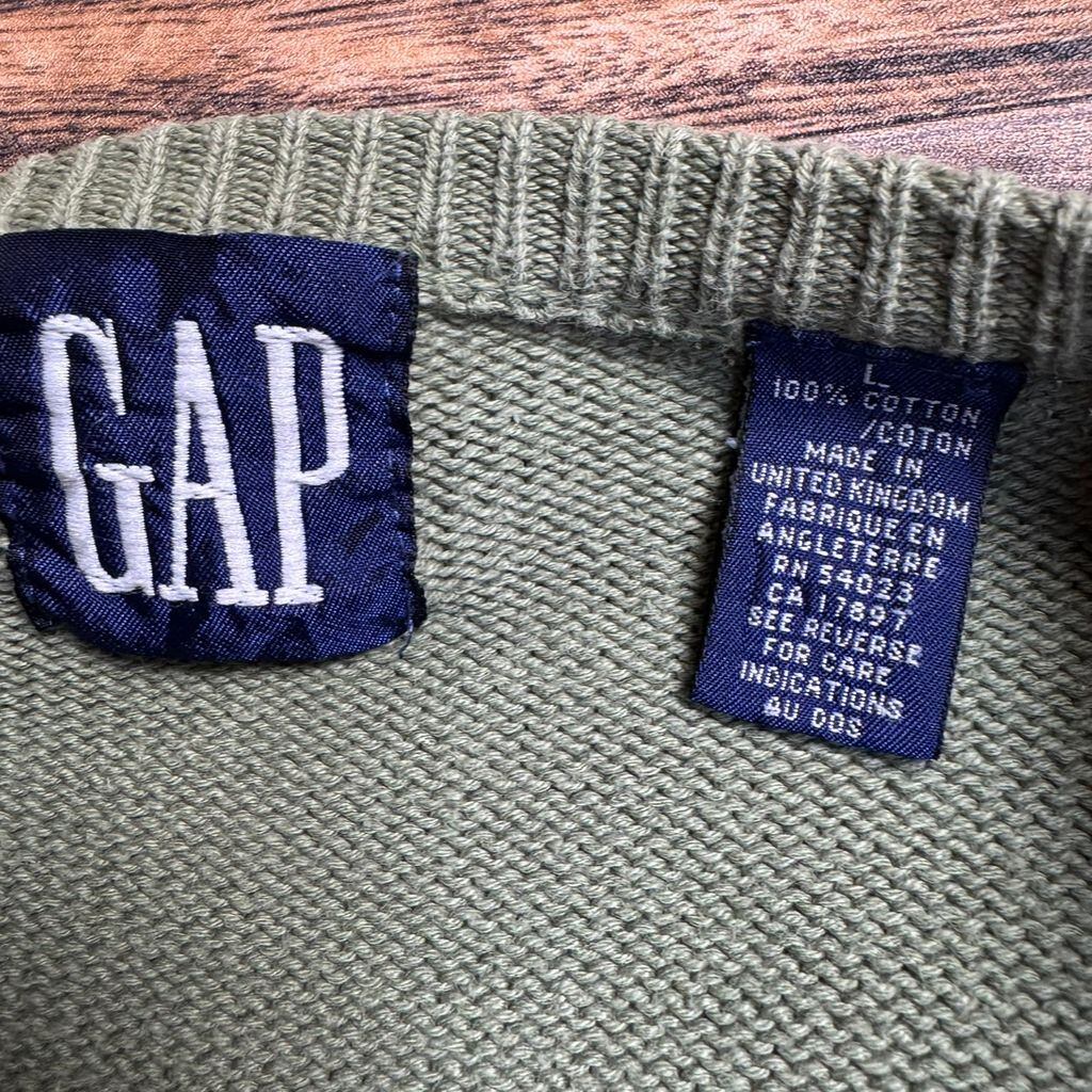 90s OLD GAP 英国製 コットンニット セーター グリーン L相当 ビンテージ ギャップ