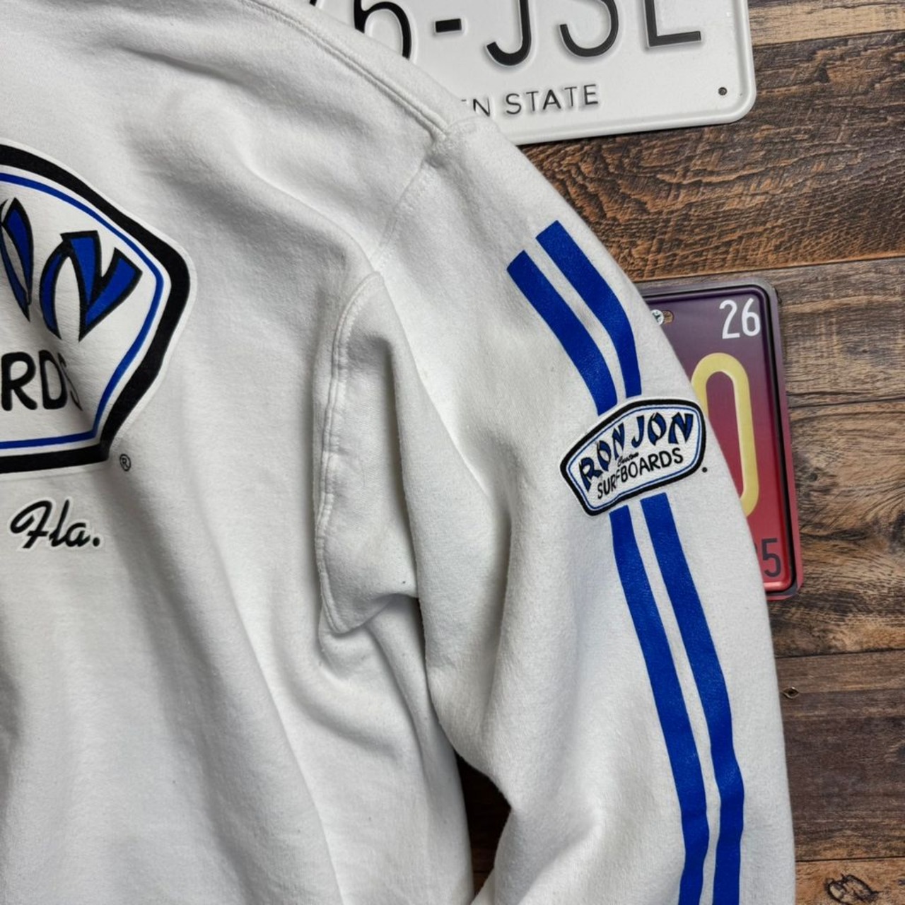 RON JON SURF SHOP ロゴプリント プルオーバーパーカー ホワイト オールドサーフ ロンジョン 両面プリント