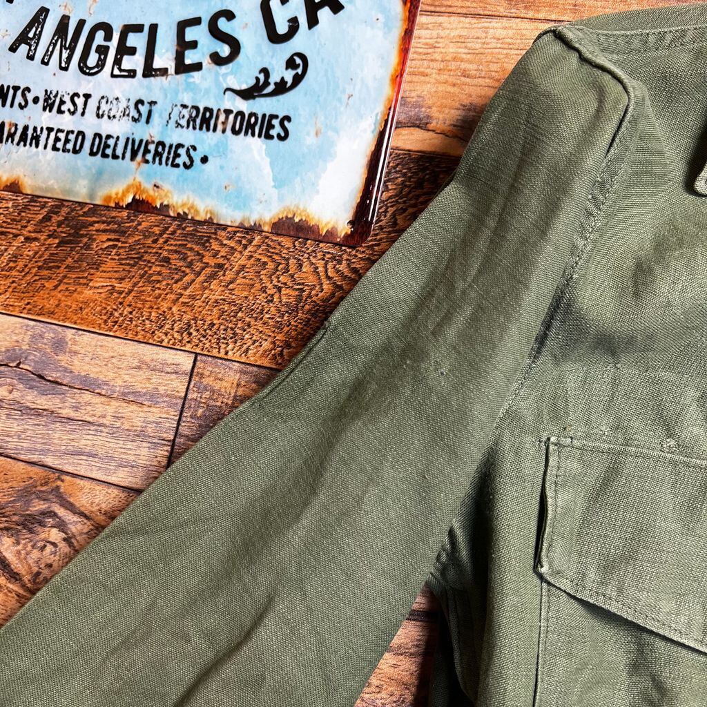 ミリタリーアイテムらしい無骨さと、経年変化による風合いを楽しめる一着です。